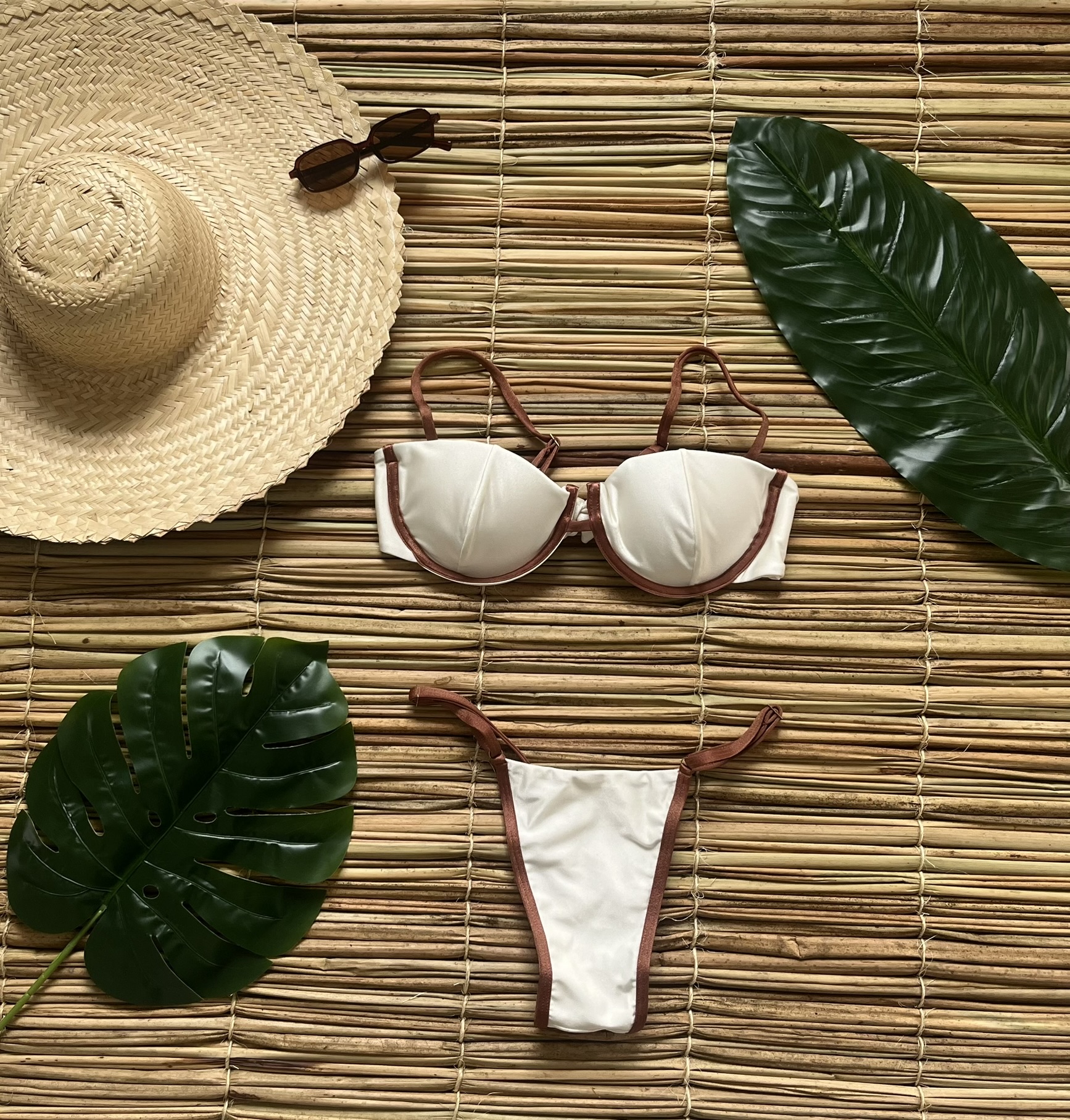 O equilíbrio perfeito entre a sofisticação e frescor. Nosso Biquíni Anavilhanas traz a delicadeza do off-white contrastando com o acabamento marrom terroso, criando um visual clean e atemporal para aproveitar o verão com estilo.